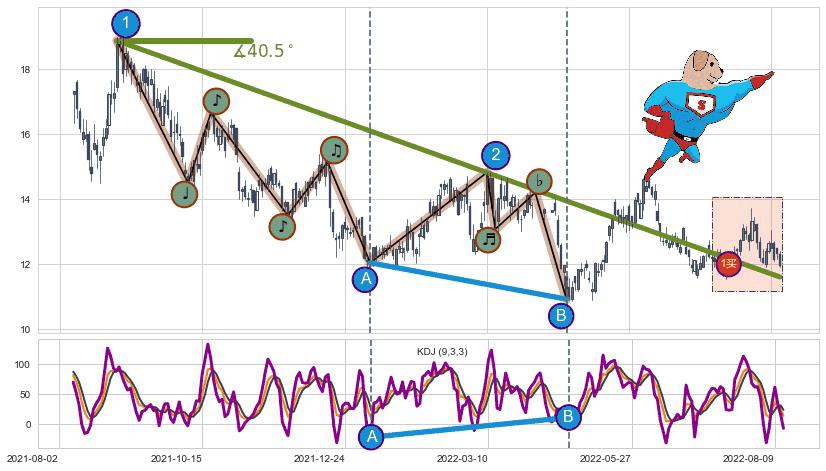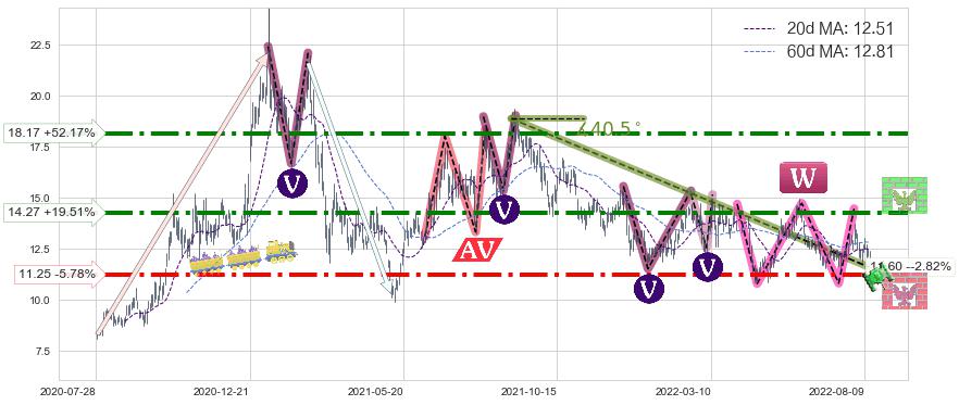 ♘ 阻力价格位14.27,可信任强度71.93%,距离最后交易2022-08-12形成的收盘价格11.94相差 +19.51%