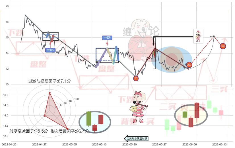 ➣ 【中枢B】:2022-01-25-2022-03-15,中枢由5笔构成,共33交易日, ZG=14.62, ZD=13.08