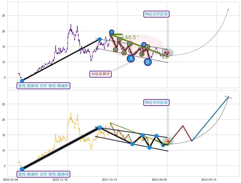 ➢ 趋势线属【中级别信号事件】降旗形属【长级别信号事件】中长周期组合信号事件,中长事件长度比36.67%