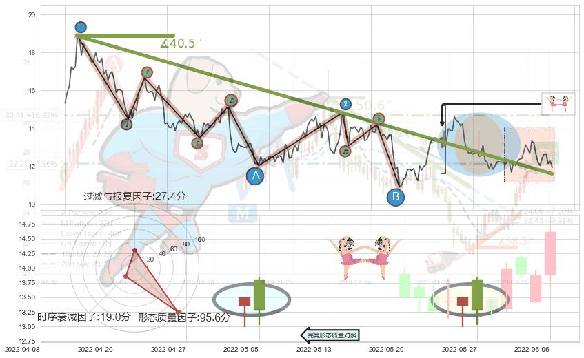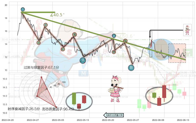 ➣ 2021-08-30-2022-06-02下跌趋势存在反转上涨[机会],虽然原下跌趋势的阻力位(11.60)已被突破,但其阻力效果尚存,原下跌趋势角度: 40.5˚