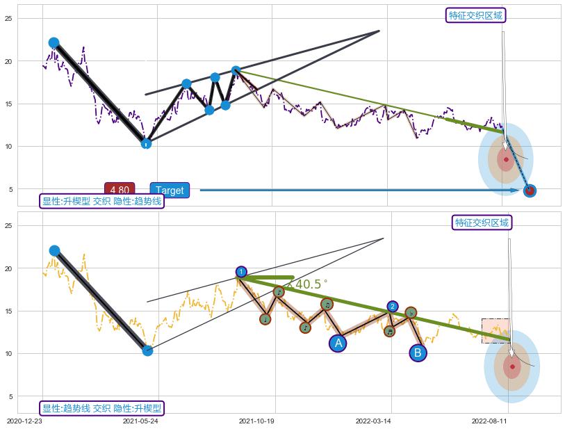 ➢ 升楔型:猜想下跌target达成后 → 上涨 → 机会信号 → 大趋势均值回复