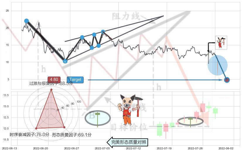 ♘ 阻力价格位18.17,可信任强度80.37%,距离最后交易2022-08-12形成的收盘价格11.94相差 +52.17%