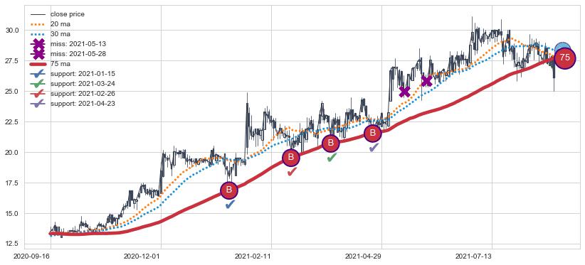 ➣ 30小时均线于(2022-06-23: 23.31)形成【金叉】基于【金叉历史模型】预测金叉后最高波峰价格: 24.80, 金叉后最高价格26.80,已经上涨超出预测最高波峰价格, 预期回调