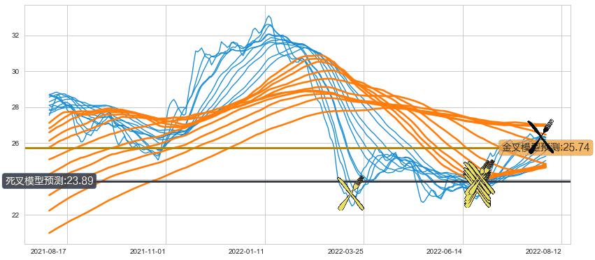 ➢ 13小时均线于(2022-08-09: 26.33)形成【死叉】基于【死叉历史模型】预测死叉后最低波谷价格: 23.89, 死叉后最低价格25.90,尚未达到预测最低波谷价格, 预期继续下跌