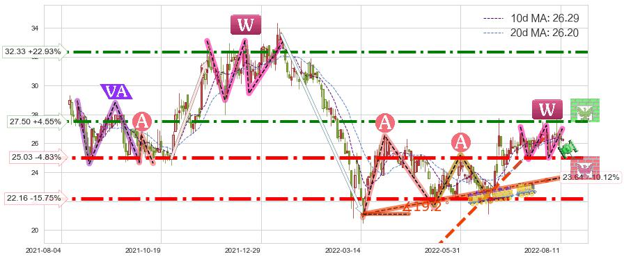 ➢ 【仅预测突破】最后价格:26.30与预测突破价格:26.80→【空间临近】后续最小【整理】第一目标价格→(2022-08-30: 29.19 )