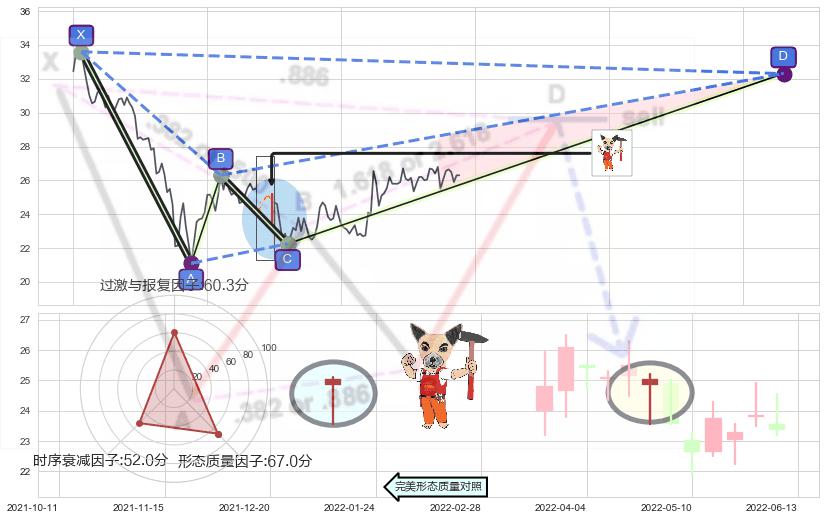 ➢ AB回撤位置在XA的41.6%,符合形态要求