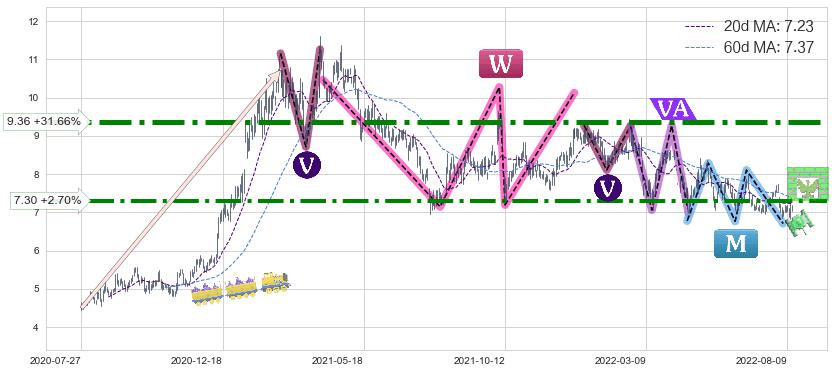 ♘ 阻力价格位9.36,可信任强度99.07%,距离最后交易2022-08-12形成的收盘价格7.11相差 +31.66%