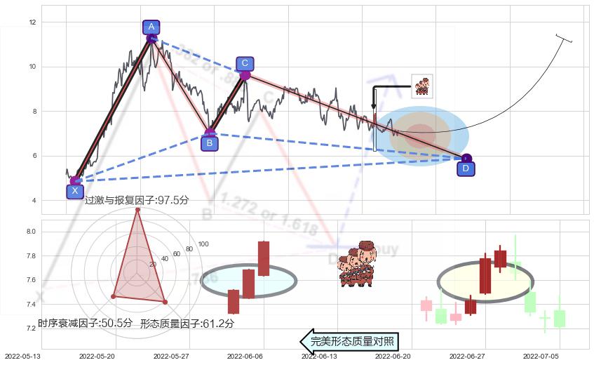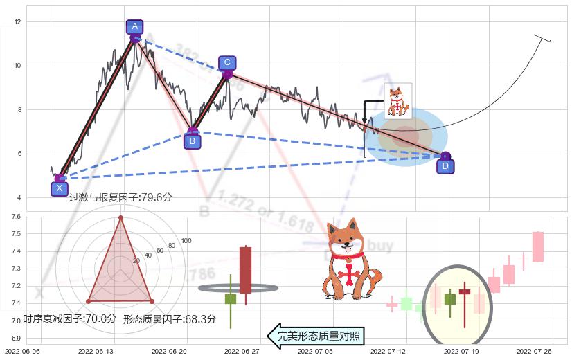 ➢ 看涨(低位)倒锤头线 🔜 谐波伽利临近d拐点上涨支撑 综合量化分数:50.19 【中性】