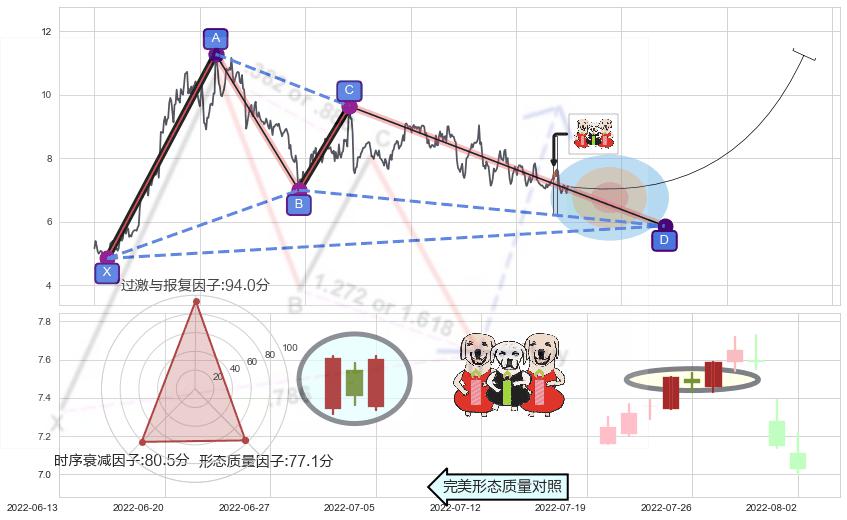 ➢ 两红夹一黑 🔜 谐波伽利临近d拐点上涨支撑 综合量化分数:53.07 【中性】
