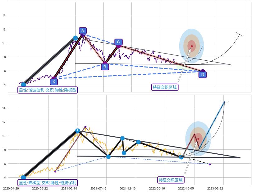 ➣ 未完成【伽利】形态起点X: 2020-10-30, 已到达C点: 2021-10-05, 预测最终D点: 2022-12-19, 共528交易日