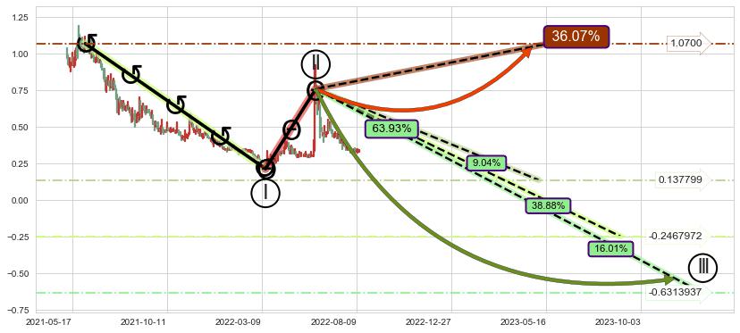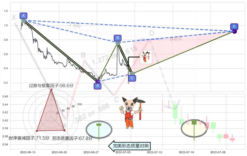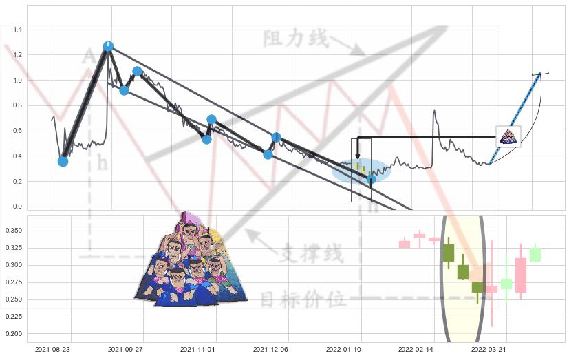➣ D点拟合预测价格0.9178,距离最后交易收盘价格0.33500相差 +173.96%