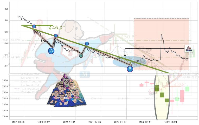 ⚔️ 2021-06-07-2022-04-08下跌趋势存在反转上涨[机会],其原下跌趋势的阻力位(-0.0304348)已被突破[强支撑信号],原下跌趋势角度: 46.0˚