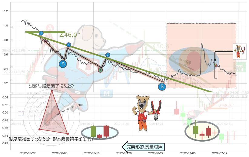 从2021-06-07至2022-04-08,共包含207个交易日,阶段股价下跌-100.38%,阶段股价变动位移路程比: 1 : 7,下跌趋势角度: 46.0