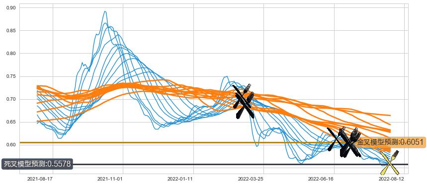 ➢ 34小时均线于(2022-06-30: 0.6059)形成【死叉】基于【死叉历史模型】预测死叉后最低波谷价格: 0.5601, 死叉后最低价格0.5400,已经下跌超出预测最低波谷价格, 预期反弹