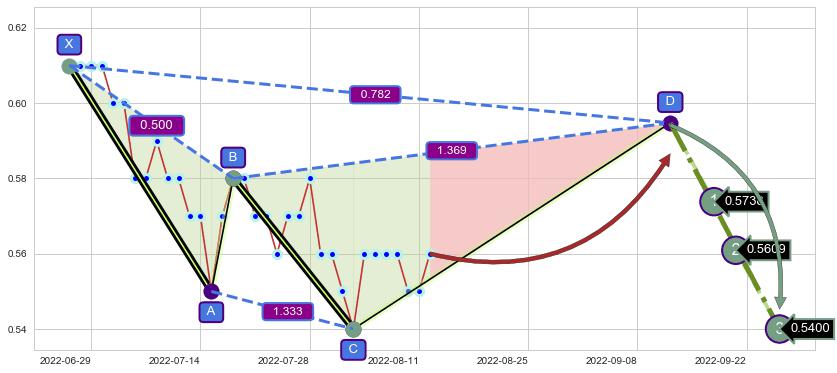 ➣ 未完成【赛福】形态起点X: 2022-06-27, 已到达C点: 2022-08-03, 预测最终D点: 2022-09-13, 共56交易日