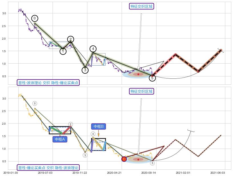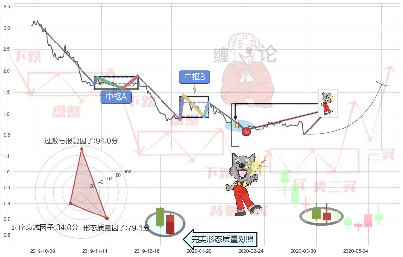 ➣ 【中枢B】:2019-12-10-2020-02-12,中枢由4笔构成,共42交易日, ZG=1.2600, ZD=0.9300