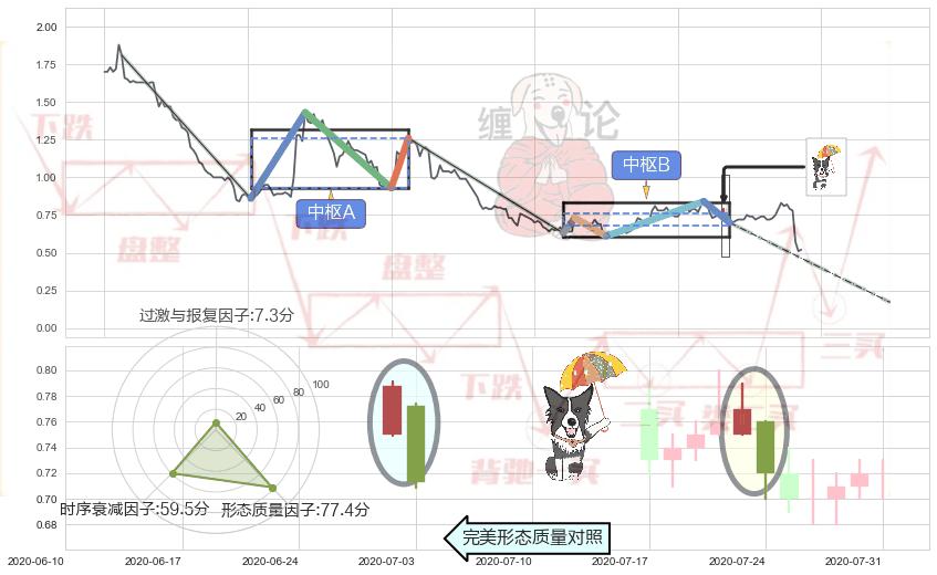 ➢ 【中枢B】:2020-05-04-2020-07-27,中枢由5笔构成,共59交易日, ZG=0.7300, ZD=0.7000