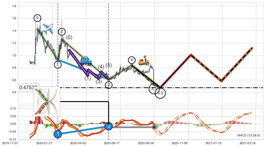 ➣ 5.1: 预测当前第5浪位置(2020-08-28, 0.5100),仍然有下跌空间