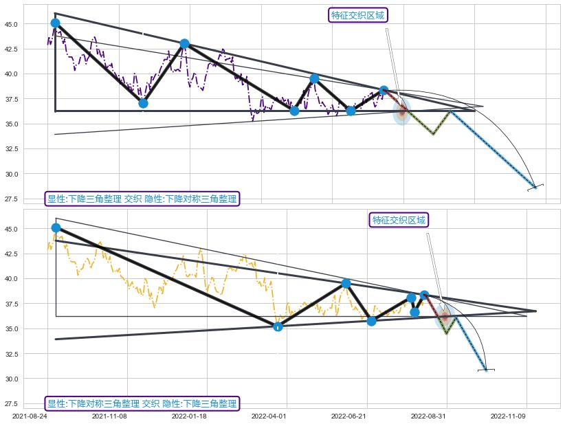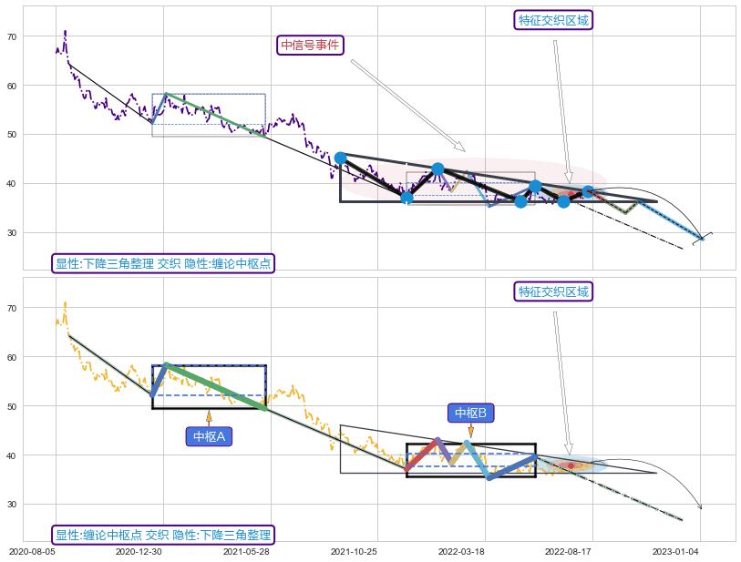 ➢ 下降三角整理属【中级别信号事件】缠论中枢点属【长级别信号事件】中长周期组合信号事件,中长事件长度比48.04%