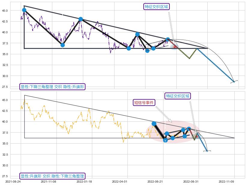➢ 升旗形属【短级别信号事件】下降三角整理属【长级别信号事件】长短周期组合信号事件, 短长事件长度比21.89%