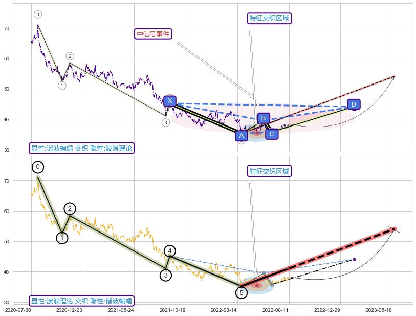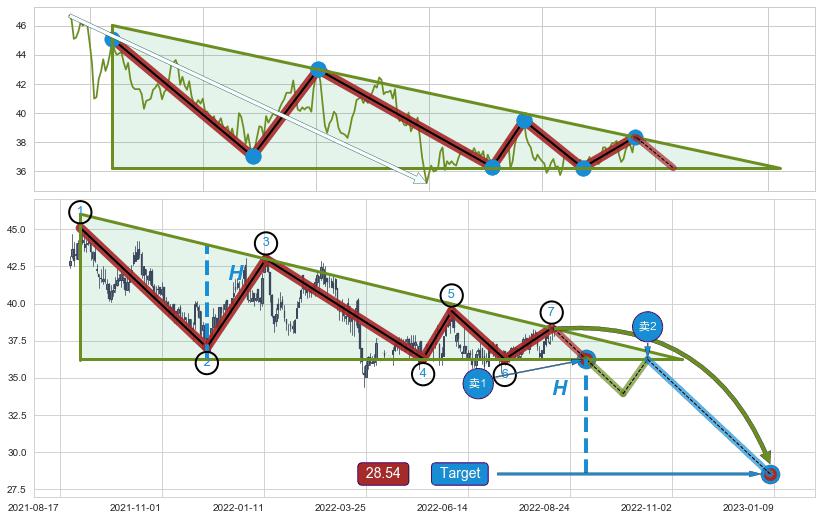 ➣ D点拟合预测价格44.03,距离最后交易收盘价格38.30相差 +14.97%