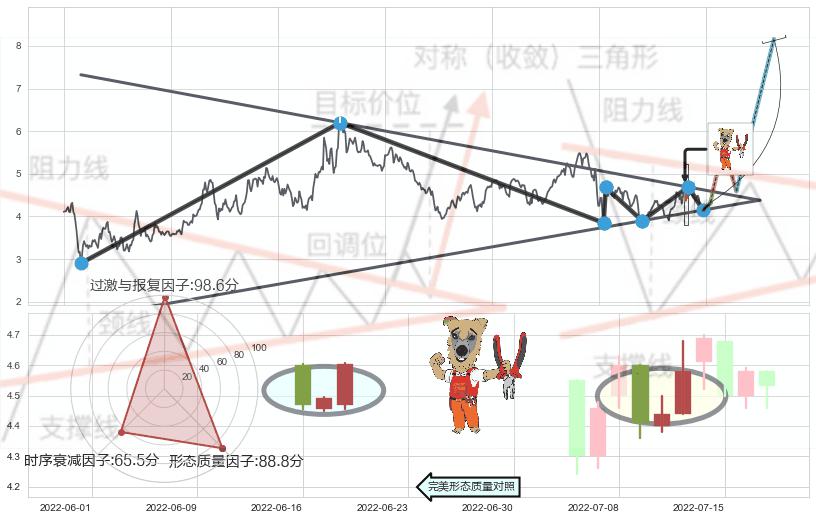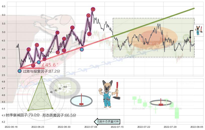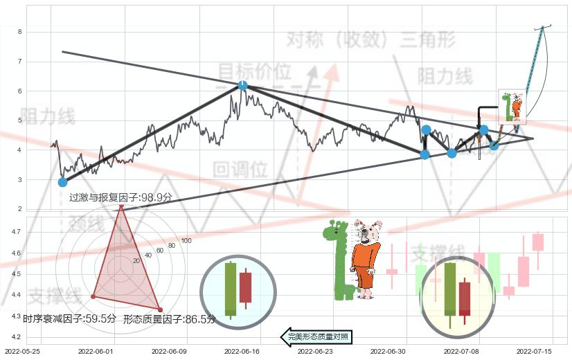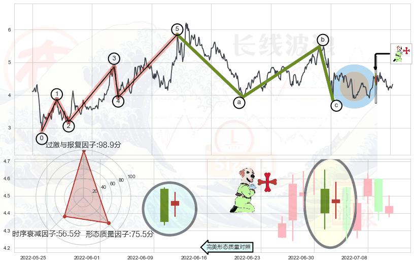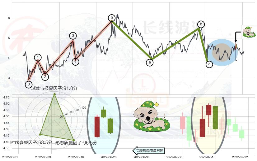 ➢ 🕰 价格走势在2022-07-06至2022-07-07期间形成中流砥柱形态,残存影响值:4.27