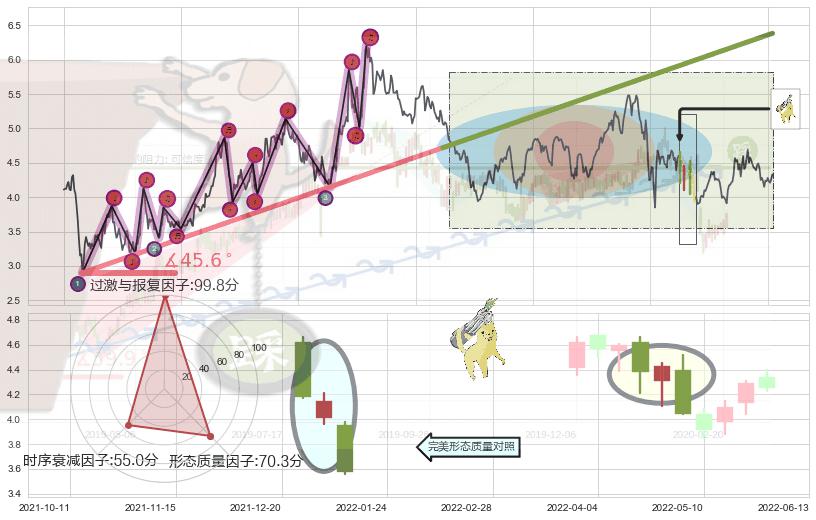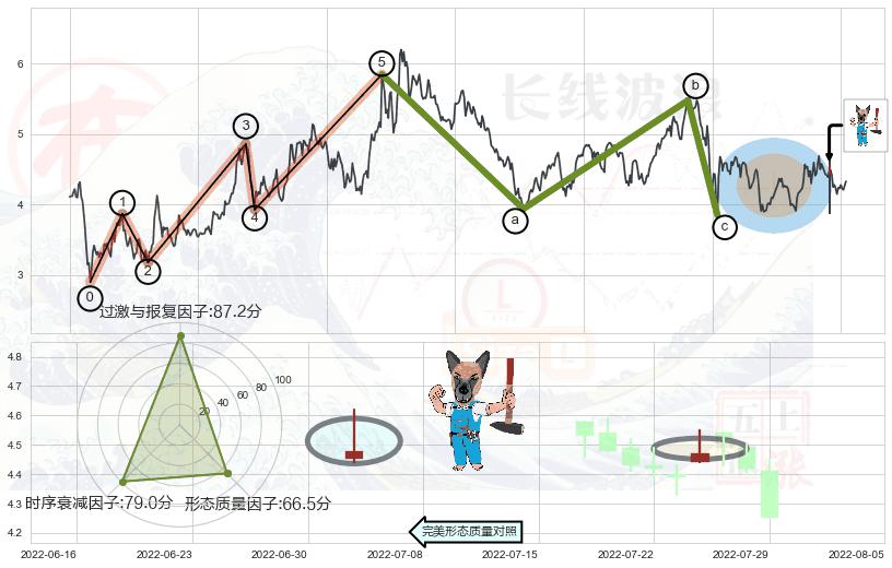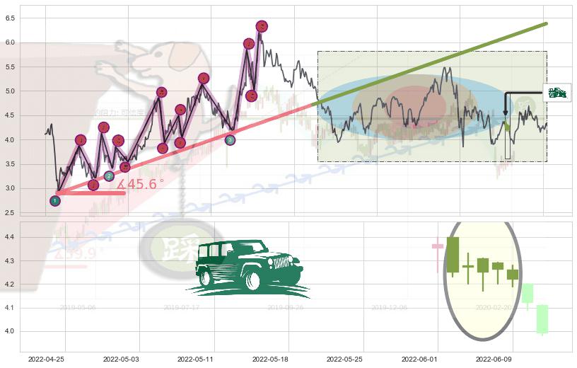 ♘ 阻力价格位5.19,可信任强度95.02%,距离最后交易2022-08-12形成的收盘价格4.33相差 +19.92%