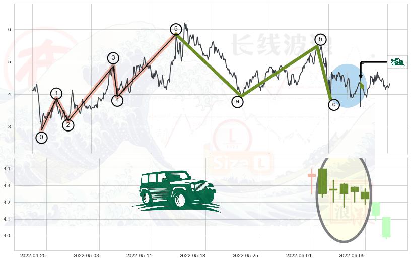 ➢ 循环浪继续向上【最低】位置(2023-05-19, 5.48),匹配聚类样本比例28.48%, 可能性概率11.89%