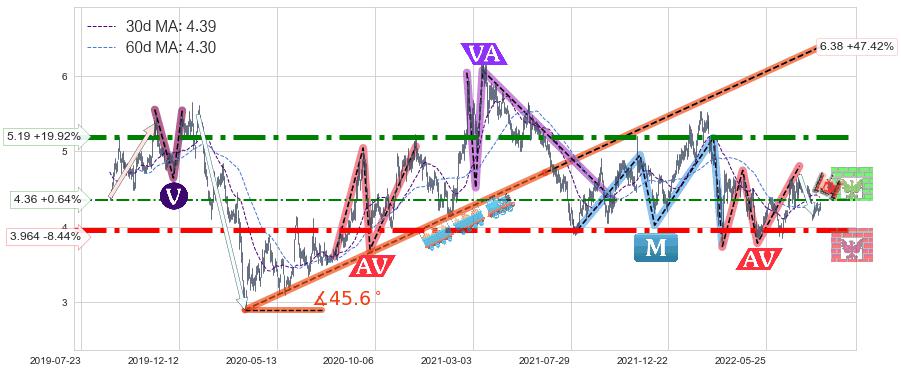 ♞ 30日均线:4.39,60日均线:4.30→ 快线>慢线