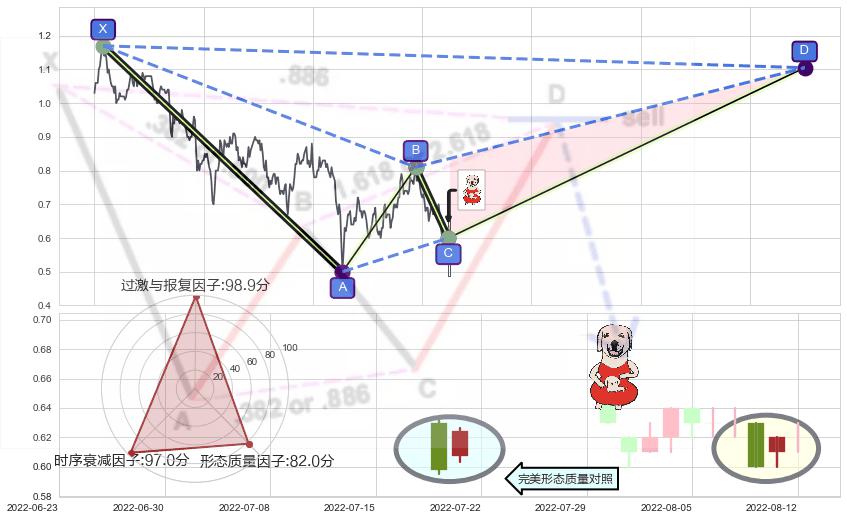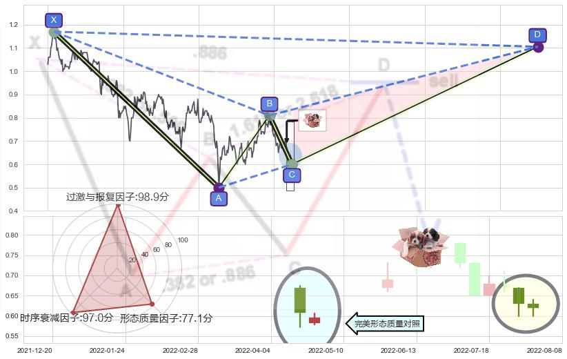 ➣ 未完成【蝙蝠】形态起点X: 2021-04-27, 已到达C点: 2022-08-10, 预测最终D点: 2023-11-09, 共642交易日
