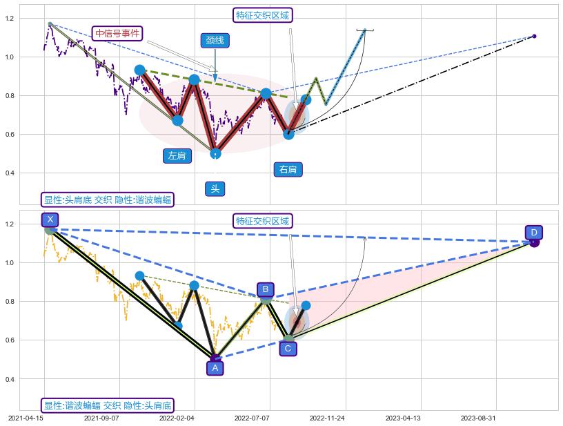 ➢ 头肩底属【中级别信号事件】谐波蝙蝠属【长级别信号事件】中长周期组合信号事件,中长事件长度比62.70%
