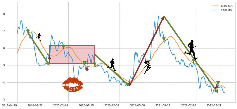 2021-08-23至2022-07-07 慢线与快线呈空头排列, 慢线与快线接触少,无缠绕