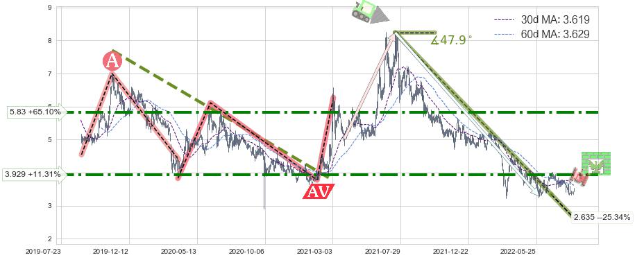♘ 阻力价格位3.929,可信任强度78.52%,距离最后交易2022-08-12形成的收盘价格3.530相差 +11.31%