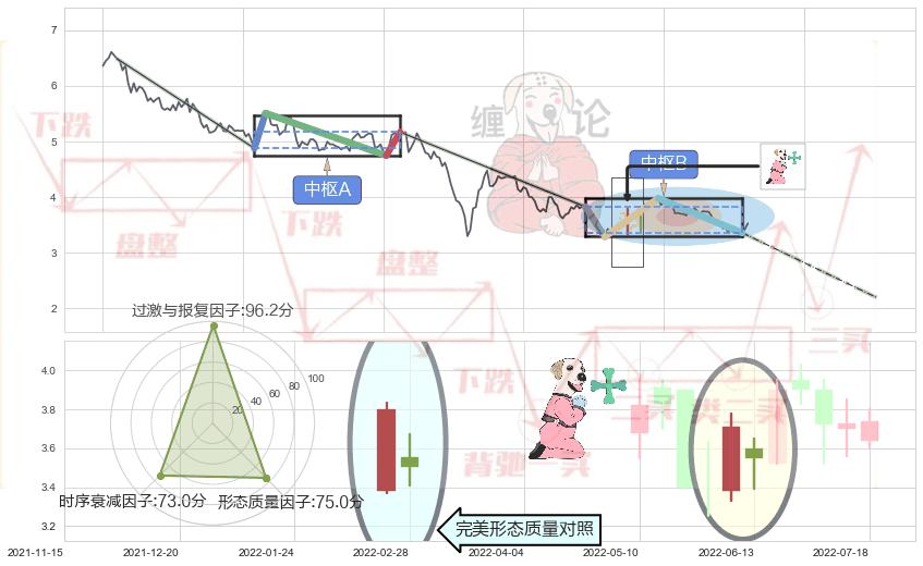 ➣ 下跌孕十字星 + 缠论中枢点破位中枢B支撑下拉信号叠加后【信号初始稳固度】极低,【看空】信号叠加【可信度影响极小】