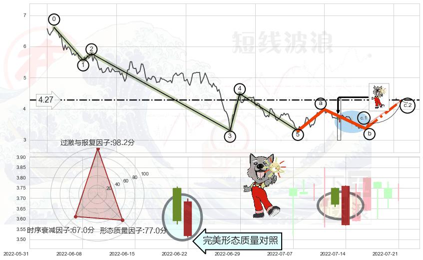 ➢ 锤头线(锤子线) + 波浪理论b蓄力反弹上涨至c信号叠加后【目标达成率】中等,【看多】信号叠加【存续影响中等】