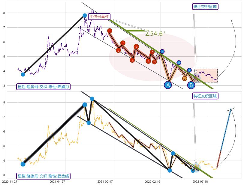 ➢ 最后的下跌趋势2021-09-07至2022-06-08:存在突破迹象,后续小反弹或者反转上涨