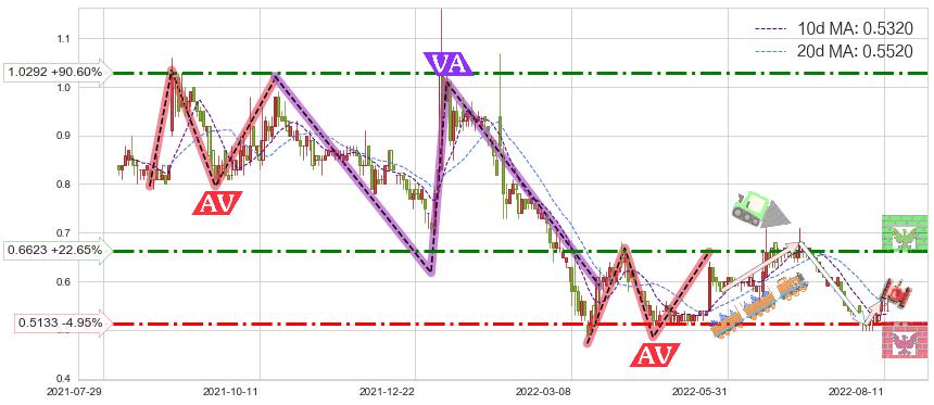➣ 【已达成】最小【反转】第一目标价格→(2022-08-03: 0.5139 ), 后续继续【反转】下跌动力依然存在,下跌空间适中