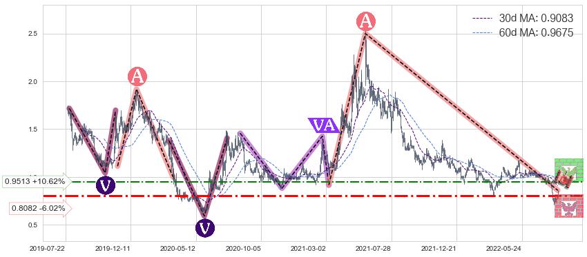 ♘ 阻力价格位0.9513,可信任强度46.24%,距离最后交易2022-08-12形成的收盘价格0.8600相差 +10.62%