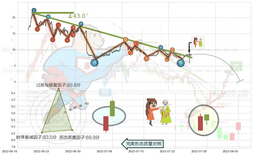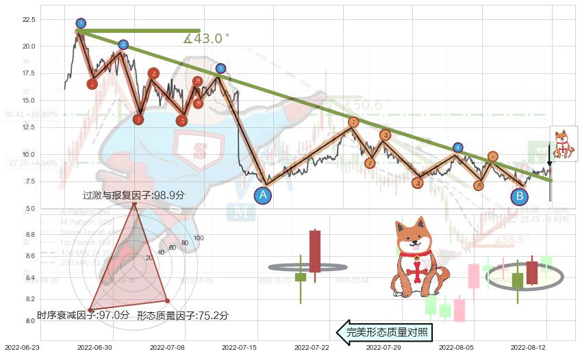 ♘ 支撑价格位7.26,可信任强度97.06%,距离最后交易2022-08-12形成的收盘价格8.45相差 -14.05%