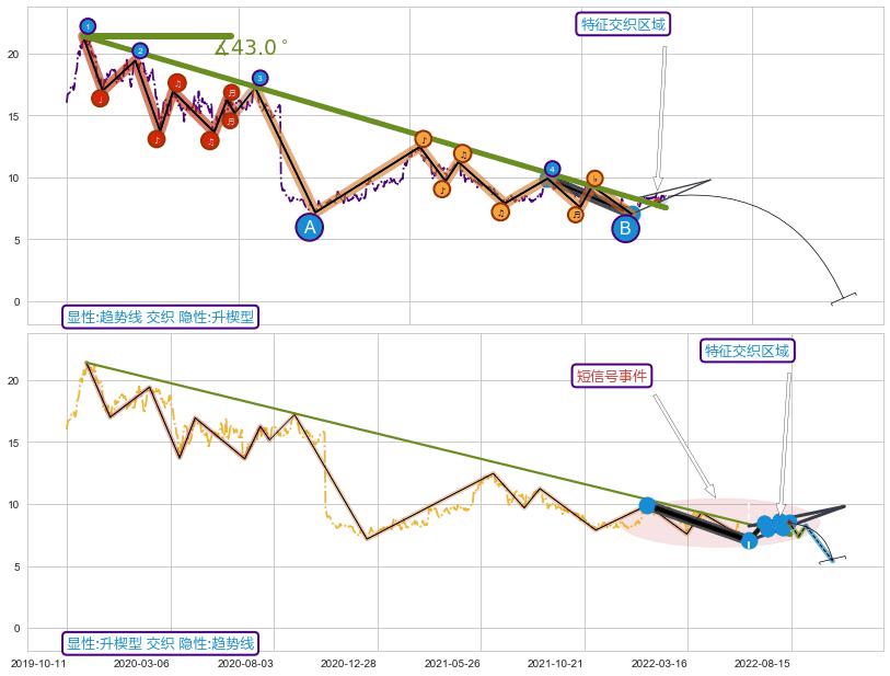 ➢ 升楔型属【短级别信号事件】趋势线属【长级别信号事件】长短周期组合信号事件, 短长事件长度比21.09%