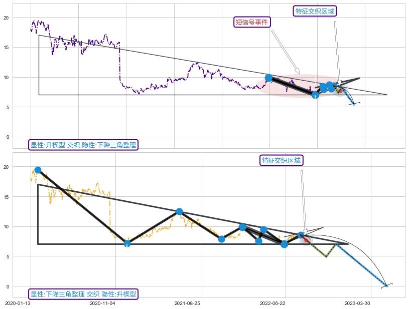 ➢ 升楔型属【短级别信号事件】下降三角整理属【长级别信号事件】长短周期组合信号事件, 短长事件长度比22.42%