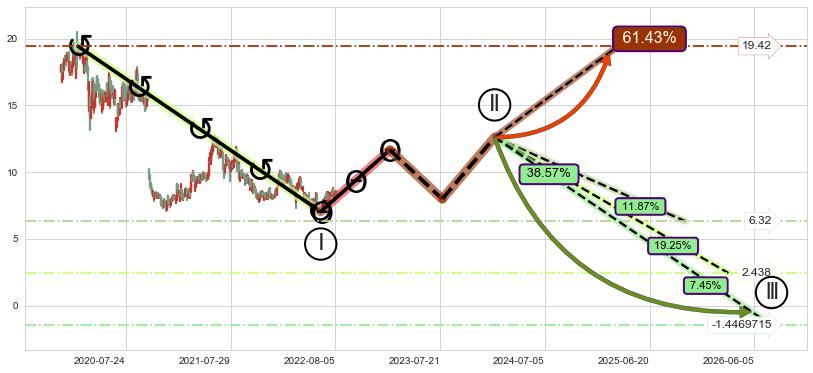 ➣ 大趋势循环浪继续向下概率38.57%