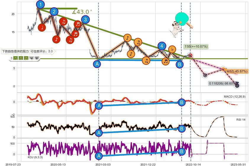 ➣ 预测:2023-03-06,【试探阻力】稳定目前下跌趋势的前提下,预测价格:4.57