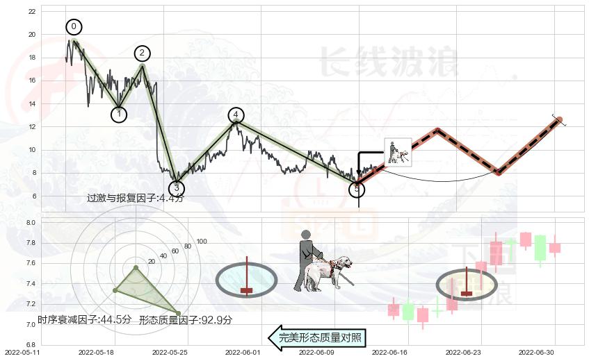 从2022-06-16至2022-08-12,共包含41个交易日,阶段股价上涨19.70%,阶段股价变动位移路程比: 1 : 4
