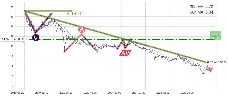 ♘ 阻力价格位11.37,可信任强度87.68%,距离最后交易2022-08-12形成的收盘价格4.57相差 +148.83%