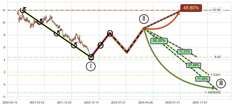 ➣ 波浪理论:猜想止跌 → 上涨 →【拐点】浪5已完成 → 大趋势均值回复