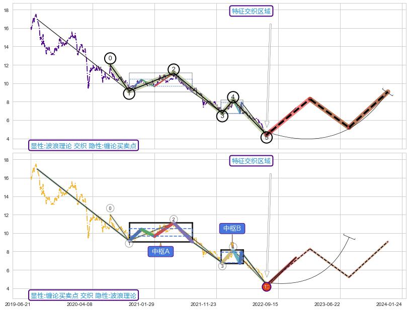 ➢ 缠论买卖点:下降缠中枢AB形成后猜想拐点1买已到达,猜想后续持续拉升(均值回复)