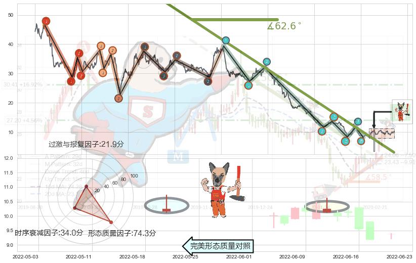 从2019-07-30至2022-06-09,共包含706个交易日,阶段股价下跌-125.14%,阶段股价变动位移路程比: 1 : 11,下跌趋势角度: 62.6