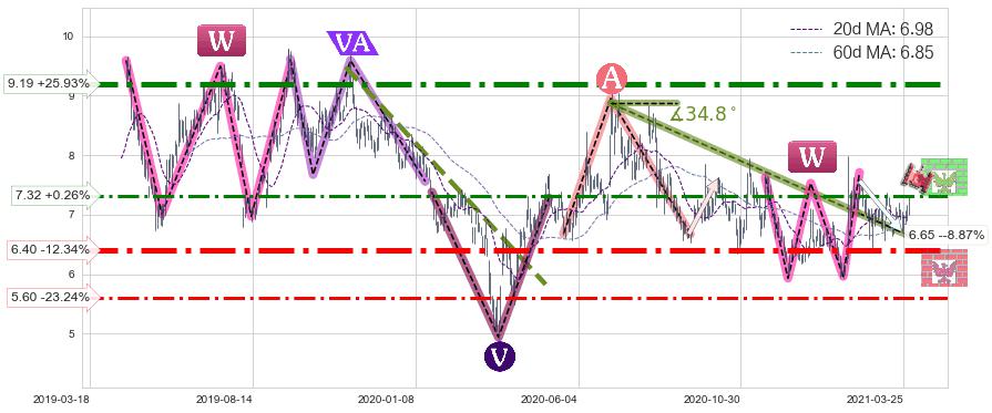 ♘ 阻力价格位7.32,可信任强度57.62%,距离最后交易2021-03-30形成的收盘价格7.30相差 +0.26%