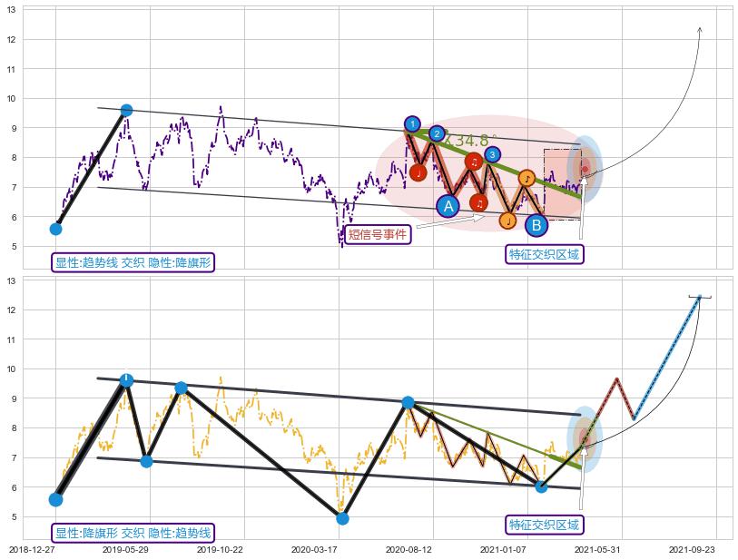 ➢ 趋势线属【短级别信号事件】降旗形属【长级别信号事件】长短周期组合信号事件, 短长事件长度比31.42%